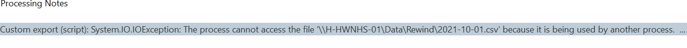 - An external resource was not available during export, e.g. API or database not available, a file may have been locked.